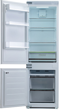 Экономичная модель (класс A+) с технологией No Frost. Полезный объем 247 л (180 л холодильное + 67 л морозильное отделение). Светодиодное освещение, 4 полки и специальный бокс для овощей/фруктов. Функция суперзаморозки. Автономное сохранение холода до 10 часов при отключении электроэнергии.