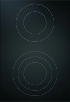 Передняя конфорка имеет три контура (диаметры 120/180/235 мм, мощность 800/1600/2500 Вт), задняя - два контура (120/200 мм, 800/1900 Вт). Длина кабеля питания 1.5 м, частота 50/60 Гц.