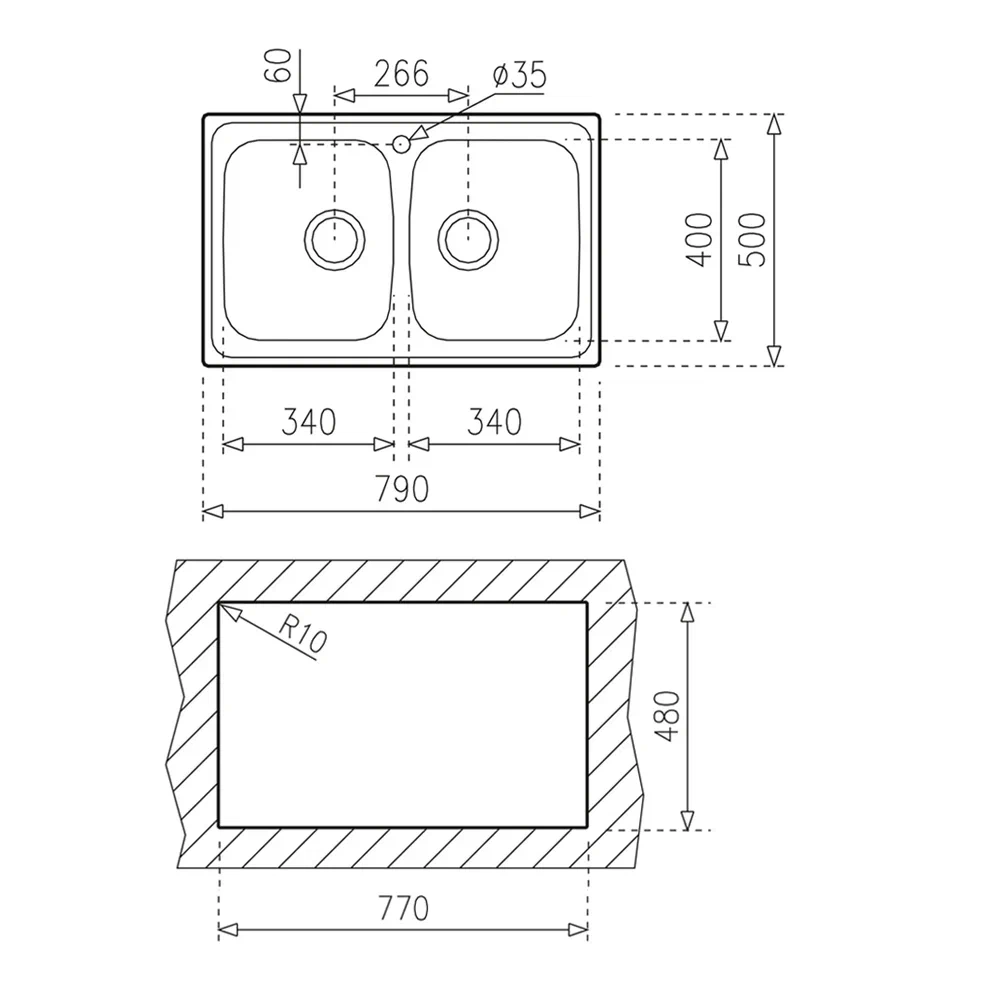 • Способ монтажа: монтаж сверху (врезная)