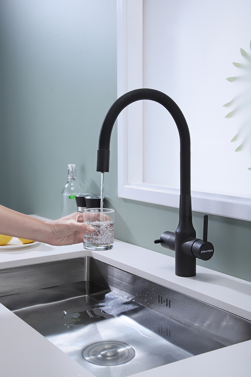 Смеситель для кухни SALIX c возможностью подключения системы фильтрации питьевой воды изготовлен из высококачественной латуни, которая отвечает высочайшим европейским стандартам качества, не содержит свинца, не разрушается со временем и безопасна для здоровья.