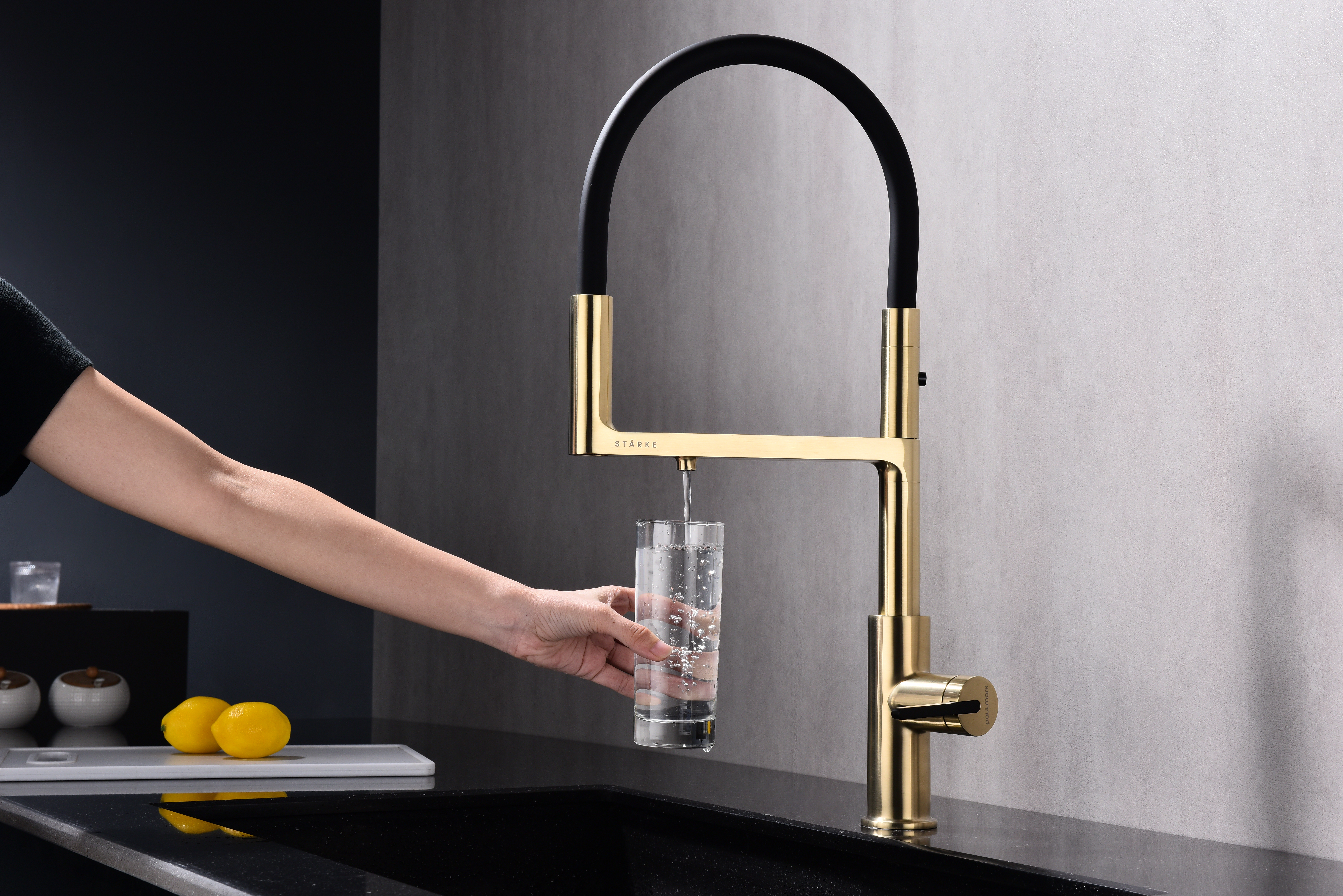 Многофункциональный смеситель для кухни TORNADO – модель премиальной серии «Starke» кухонной сантехники бренда Paulmark изготовлен из высококачественной латуни, которая отвечает высочайшим европейским стандартам качества, не содержит свинца, не разрушается со временем и безопасна для здоровья.